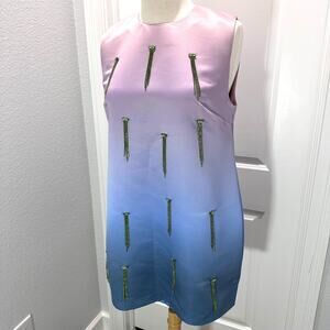 NEW CYNTHIA ROWLEY SATIN RHINESTONE TASSELS OMBRE PINK BLUE SHIFT DRESS LARGE