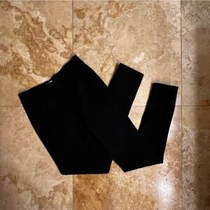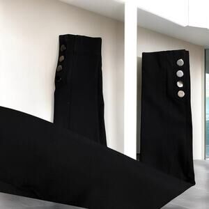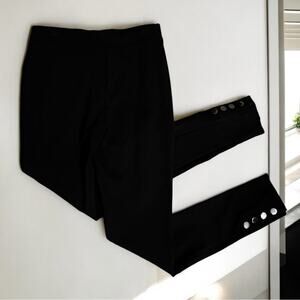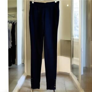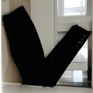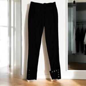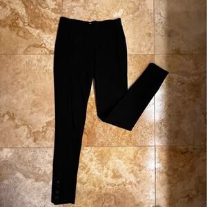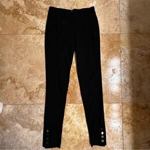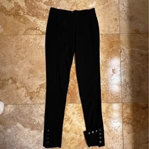 New without tags Cache Ponte Knit Equestrian Style Ankle Length Riding Leggings are a structured style pant with four silver snaps along the ankles. Elastic waist band. Some stretch. Black.