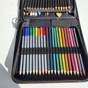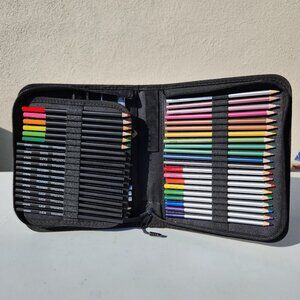 NEW 76 Piece Colored Sketching Pencils Set Watercolor Pencils Charcoal Travel Case Blending Stumps