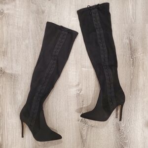 NEW Call it Spring Black Over The Knee Boots Side Lace up