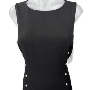 NEW Calvin Klein Black Pearl Button Sleeveless Knee Length Pencil Sheath Dress 8