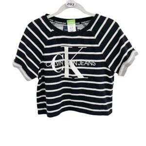 NEW Calvin Klein ~ Black White Striped Logo Crop Top ~ Small