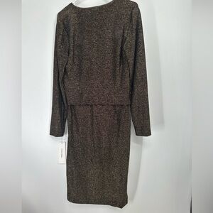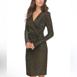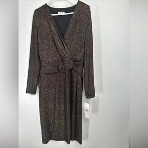 NEW Calvin Klein Bronze Metallic Gold Shimmer Faux Wrap Knot Dress Sz 10