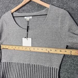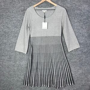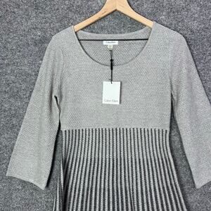 NEW Calvin Klein Flare A-Line Knit Sweater Dress Grey With Metallic Tread Size M