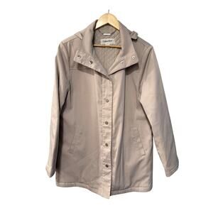 NEW! Calvin Klein L Hooded Raincoat Quilted Interior Waterproof Jacket Tan Beige