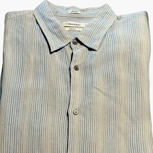 NEW Calvin Klein Long Sleeve Button Down Linen Shirt Size XL Thin Blue Stripe