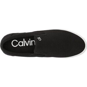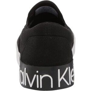 NEW Calvin Klein Men Ryor Black White Canvas Slip On Flat Sole Sneaker Shoe