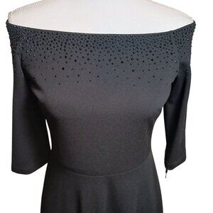 NEW Calvin Klein Off-The-Shoulder High-Low Dress Black Beading Detail Size 4