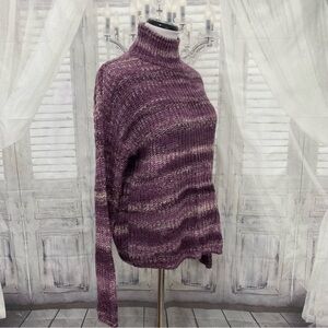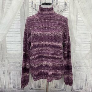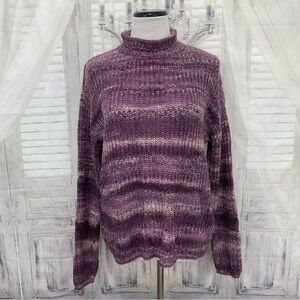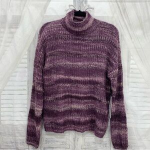 Calvin Klein Size Small Mock Neck Purple Striped Sweater Mohair Wool Acrylic
