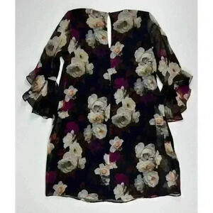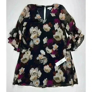 NEW! Calvin Klein Women's 6 V-Neck 3/4 Ruffle Sleeve Floral Chiffon Dress NWT$99