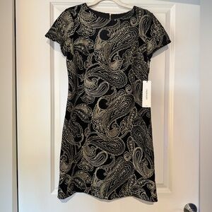 New with tags! Perfect festive holiday party dress. Metallic gold embroidery on black velvet. Offers welcome! Retail $149. Tag has been marked to prevent store returns.