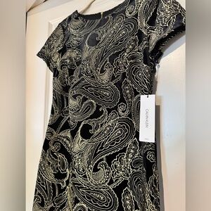 NEW Calvin Klein Womens Short Sleeve Embroidered Velvet Shift Dress Size 6 NWT