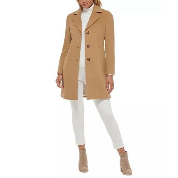 NEW Calvin Klein Womens Size 10 Camel Wool Cashmere Blend Single Breasted Coat