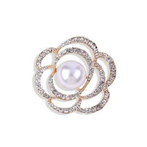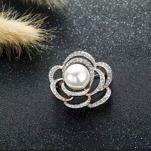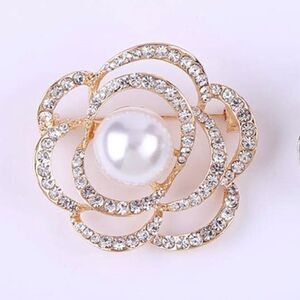 NEW Camellia Flower Faux Pearl Rhinestone Broach