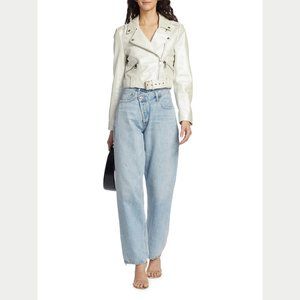 NEW Cami NYC Size Large Women's Kali Lamb Leather Moto Jacket - Pearl