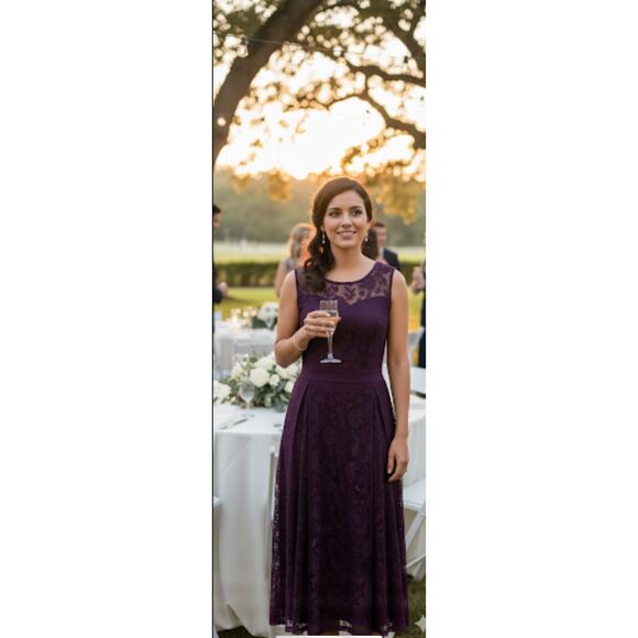 NEW Candalite Woman Plus Plum Purple Floral Lace Dressy Maxi Flare Dress Size 1X