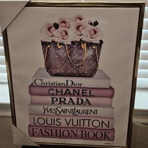 NEW Canvas Fashion Wall Art | Pink Tone Books, Bag With Roses - Canvas Print
