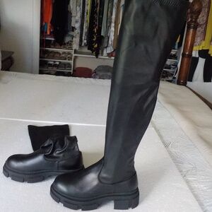 CAPE ROBBIN BLACK OVER-THE-KNEE BOOTS