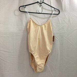 NEW Capezio Camisole Bodysuit Adjustable Clear Straps NWT Beige Large