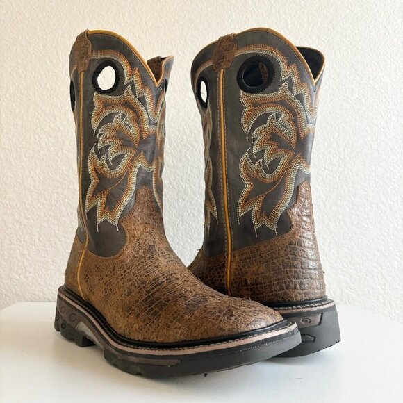 NEW Capitan Mens Cowboy Workboots Size 9D Western Brown Leather Square Toe Boots