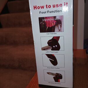 Car Cane Portable Handle Door Grab Assist Mobility Aid Glass Breaker Belt Cutter Product description 3-In-1 Car Cane, Make It Easier To Get In & Out Of Any Car, Fits Into Your Car's Door Latch To Give You The Extra Leverage & Stability You Need, Just Hold The Non-Slip Grip To Support Yourself As You Get In Or Out, Stores Neatly In Your Door Pocket Or Glove Box, So It's Always There When You Need It, Has A Handy Light, Deluxe Version Also Features A Seatbelt Cutter & Hammer To Break Glass Perfect For Emergencies, Sturdy Handle Won't Slip Or Budge When You're Using It. Feature Nonslip grip is comfortable to hold. Built-in flashlight Gives you the leverage to lift yourself up Forged aluminum construction can hold 350lbs Stores away easily in your door or glove box Gives you a handy grip so you won't slip on those icy days size: As show Package includes: 1pc Multi-function cutter & break & Door Grab Assist Mobility Aid