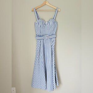 NEW Cara Cara Calypso Midi Dress Ivory Blue Striped Seersucker | US 6 UK 10