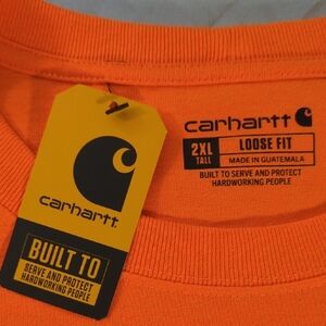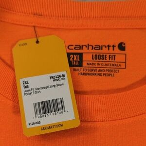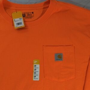Vibrant orange long sleeve tee. Features chest pocket with Carhartt logo. 2XL tall, amazing quality, new with tags, bright, ready to go..