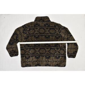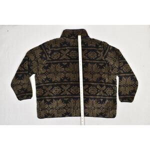 This Carhartt Women's Aztec Fleece Pullover, model OJ6470-W, is a stylish and cozy addition to any wardrobe. Crafted from 100% polyester, it offers warmth and comfort with a distinctive Aztec pattern in black and brown. The pullover features a stand-up collar and a quarter-zip closure, making it versatile for various occasions, from casual outings to outdoor activities. The loose fit ensures ease of movement, and the fleece fabric provides excellent insulation. This item is in excellent used condition with no visible stains, tears, or damage. Its durable construction, a hallmark of the Carhartt brand, means it's built to last. Perfect for layering in cooler weather or as a standalone statement piece. Please refer to the provided images for detailed measurements and to confirm its excellent condition. The size tag indicates a Women's Plus Size 2X (20-22).