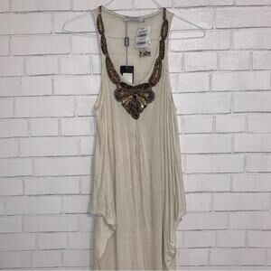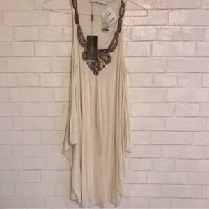 NEW Carlos Miele $255 Beaded Flowy Tank Tunic Dress Cover Up Ivory MEDIUM