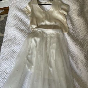 Ivory (officially: charmeuse). Purchased new from Carol Hannah. Never worn, only tried on, but there are very minor flaws (pictured):