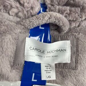 NEW Carole Hochman Plush Wrap Robe Women's L Gray Faux Fur Patch Pockets