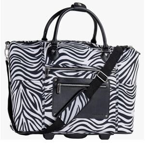 Keywords: carry on bag, rolling luggage, travel bag, wheeled duffel, zebra print bag, designer luggage, flight approved, weekend bag, overnight bag, fashion luggage, animal print bag, travel accessories, stylish travel, compact luggage, airline carry on, vacation bag, office bag, rolling office bag, TSA approved