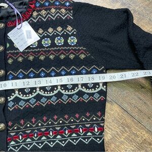 NEW Carson Sweater Cardigan Coat Black Floral Embroidered Womens Small Wool
