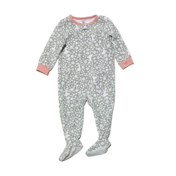 Carter's fleece pjs in light grey with sparkly white floral and ballerina print. Pink trim. Get this in your bundle with some cute outfits for an amazing closet discount!
