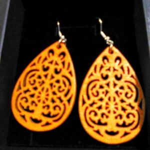 NEW Carved Wood Dark Yellow Earrings with alloy hooks