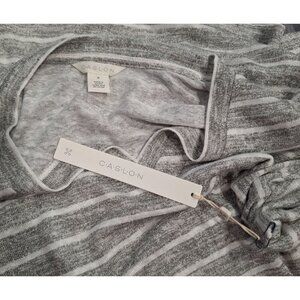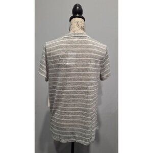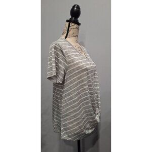 NEW Caslon V-Neck Gray & White Striped Knot-Front Tee/Sz., M