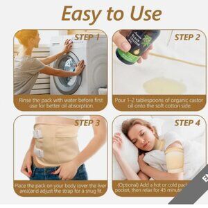 NEW Castor Oil Pack Wrap 9 Pcs -Reusable Hot/Cold Therapy Kit for Neck Back Knee