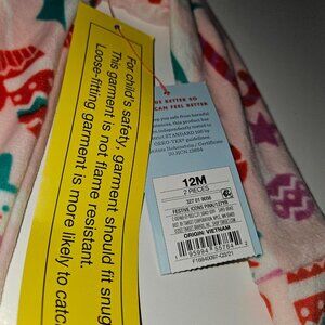 NEW Cat & Jack Christmas Pajama Set 2-Pc Baby Girl 12 Months Pink Festive Icons
