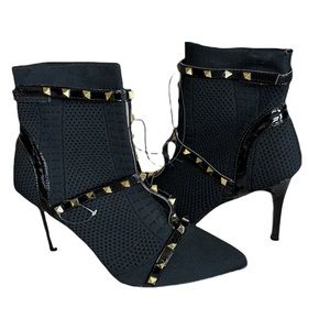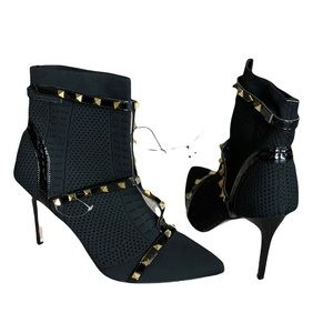 NEW Catherine Catherine Malandrino Socks Studded Pull On Ankle Boot Black