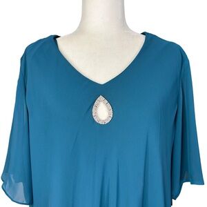 NEW Catherines Tiered Chiffon Maxi Dress 1X Rhinestone Keyhole Formal Party