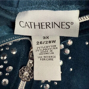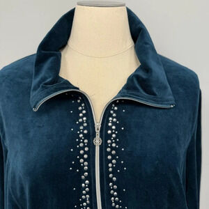 NEW Catherines Velour Cozy Full Zip Jacket Rhinestone Beaded Plus 3X Teal Green