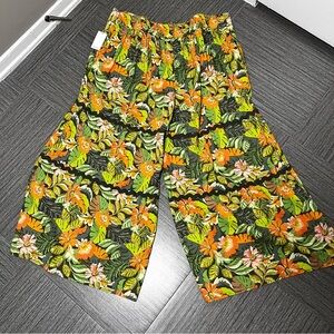 NEW Cato Women Linen Pants 22/24 Petite Tropical Floral Wide Leg High Rise 3X
