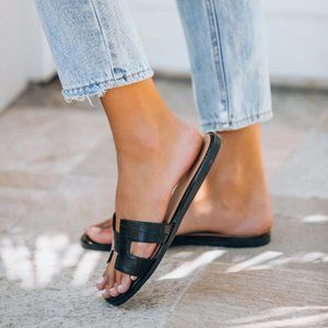 NEW Ccocci Croc Embossed Vegan Leather H Band Slide Slip On Comfy Sandals Black