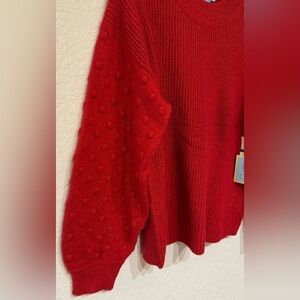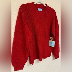 NEW CeCe Women’s Red Puff Sleeve Bobble Ribbed Sweater from Nordstrom Size L