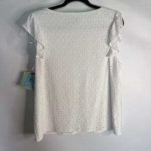 NEW CeCe Women’s White Eyelet Ruffle top cap sleeves size large. Fully lined