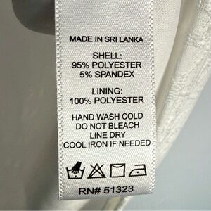 CeCe white eyelet lace top fully lined blouse. Size large. Ruffled cap sleeves. Shell polyester spandex. Lining polyester