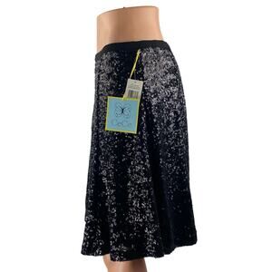 NEW Cece Champagne Soiree Rich Black Sequin Elastic Waist A Line Mini Skirt Sz 6