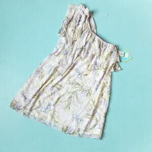 NEW Cece Purple One Shoulder Baja Palm Print Ruffle Neck Shift Dress Size Large