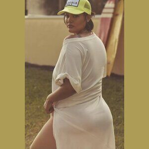 NEW Celandine - Petite Sizes XS,S, M, L Gathered T-Shirt Dress - White