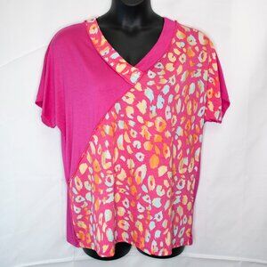 Soft animal print top from Celeste in a women's size Large. Pink with orange, yellow, green. New with tag attached.